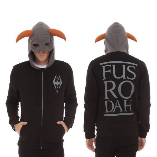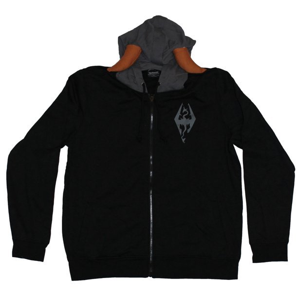 Sudadera de algodón unisex Skyrim, en color negro con detalles en capucha.